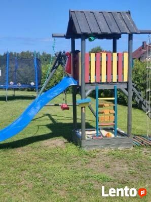 Do dyspozycji dzieci plac zabaw z trampoliną, małym domkiem, piaskownicą, huśtawką i zjeżdżalnią.