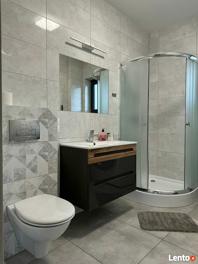 Na parterze duży salon z otwartą kuchnią i dużą łazienką z prysznicem.